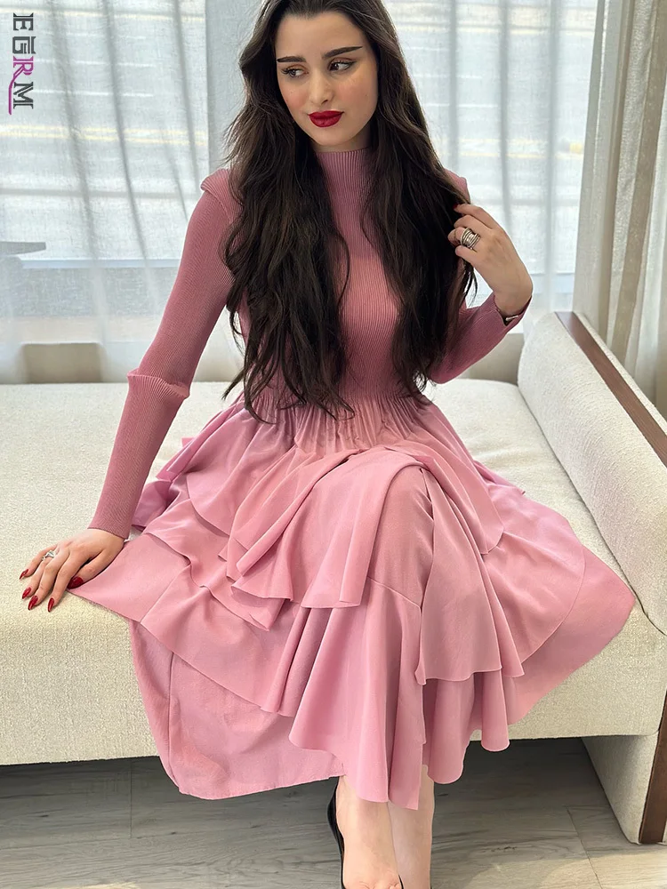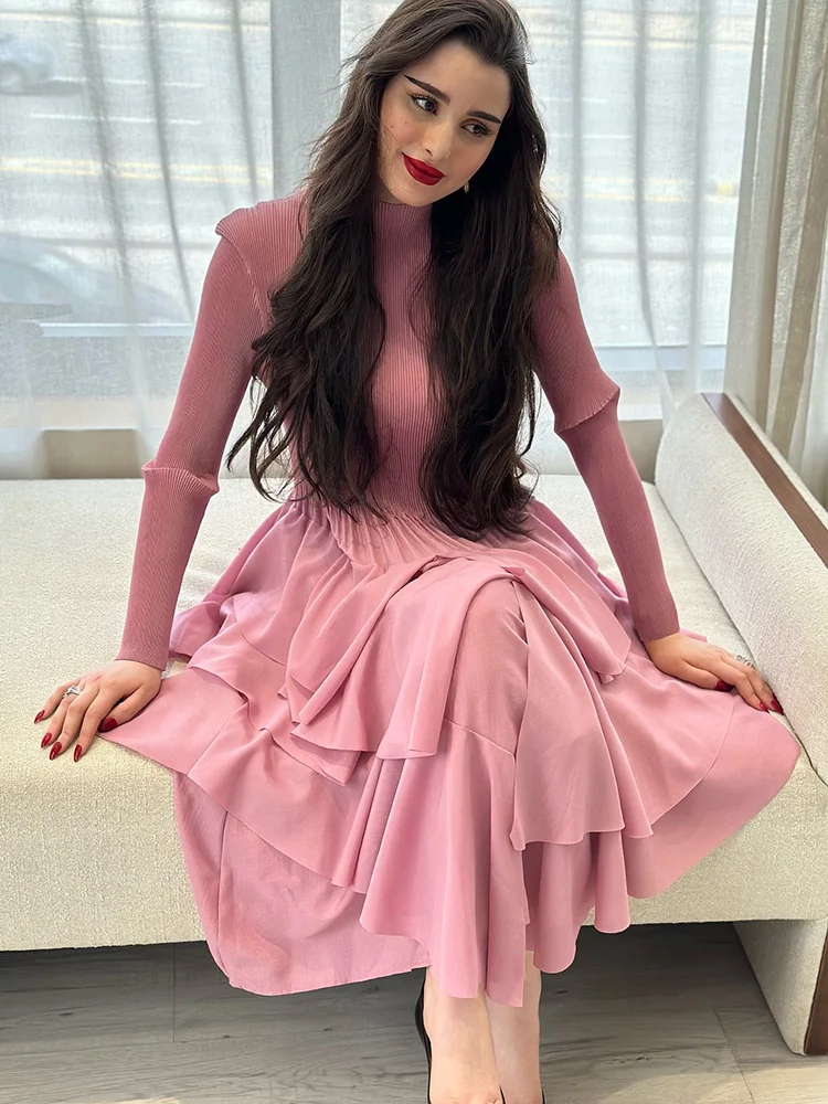 Mid Length เดรส For ผู้หญิง ยาว Sleeves Irธรรมดา Ruffles Patchwork A-line งานเลี้ยงตอนเย็น งานปาร์ตี้ เดรส