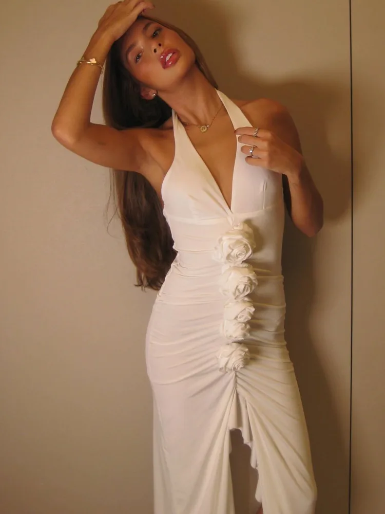 งานปาร์ตี้ Club งานเลี้ยงตอนเย็น เดรส ผู้หญิง เซ็กซี่ Deep V ยาวคลุมข้อเท้า Female Vestido Temperament เดรส